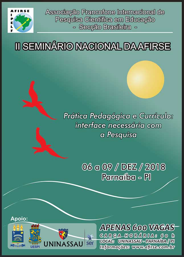 O II Seminário Nacional foi realizado de 06 a 09 de dezembro de 2018, sobre as práticas pedagógicas e os currículos da educação brasileira na UNINASSAU – Parnaíba-Piauí.